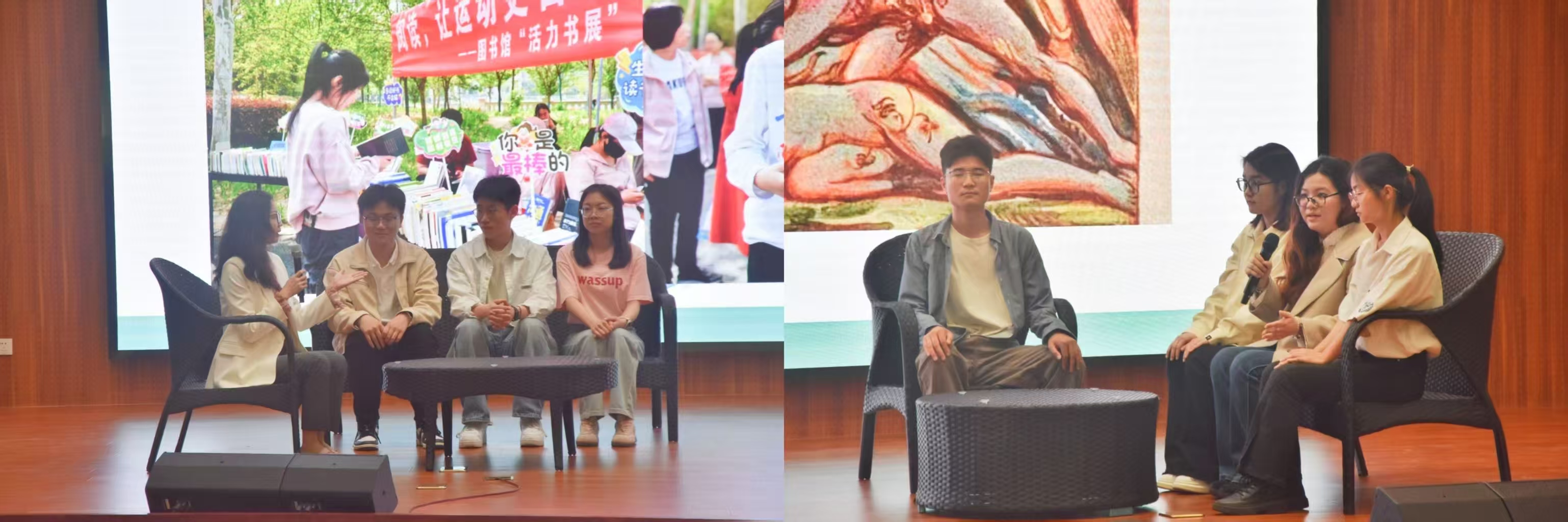 我院春华秋实读书会成员带来读书分享,七位同学结合自身读书体验,从不同角度分享个人的阅读感悟与心得体会,向大家分享了《平凡的世界》《裁缝师的礼物》《魂断威尼斯》等多本经典书籍。台上台下,以书为媒,以文会友,开启了一场别开生面的读书分享会,体现了思想的碰撞,引发了在场师生的精神共鸣。