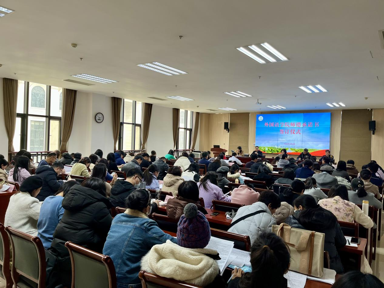 本网讯(审稿:杨鑫 供稿:郝晓峰 摄影:黄彪)为深入贯彻落实习近平总书记关于师德师风的重要指示精神,进一步规范教师履职履责行为,大力弘扬教育家精神,培养良好师德师风,营造清爽、有温度的育人环境,3月4日,我院组织举行《纵横中文网 师德承诺书》签订仪式。会议由院党委副书记杨鑫主持,全体教师参与。