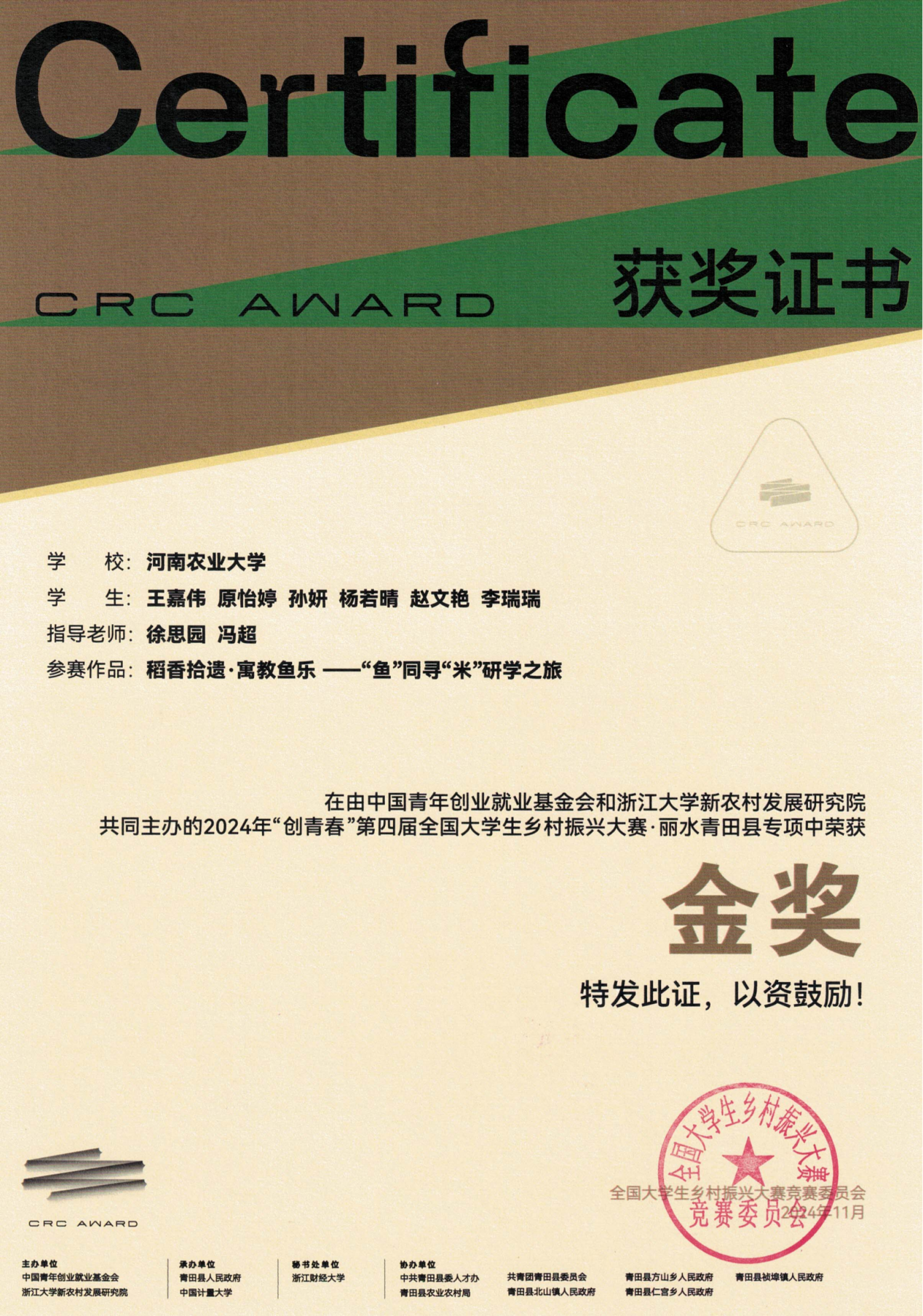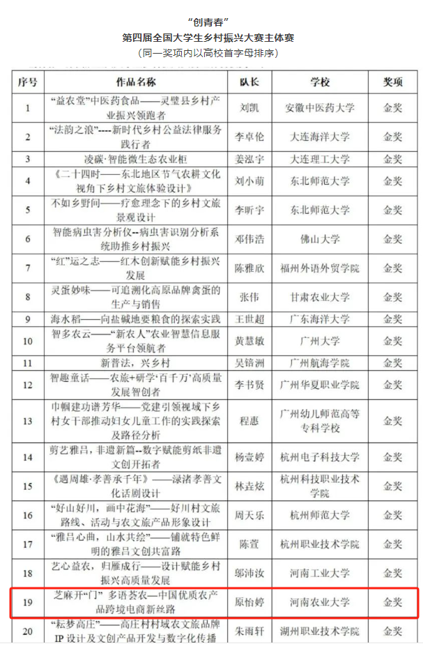 喜报|2金!我院在“创青春”第四届全国大学生乡村振兴大赛中喜获佳绩