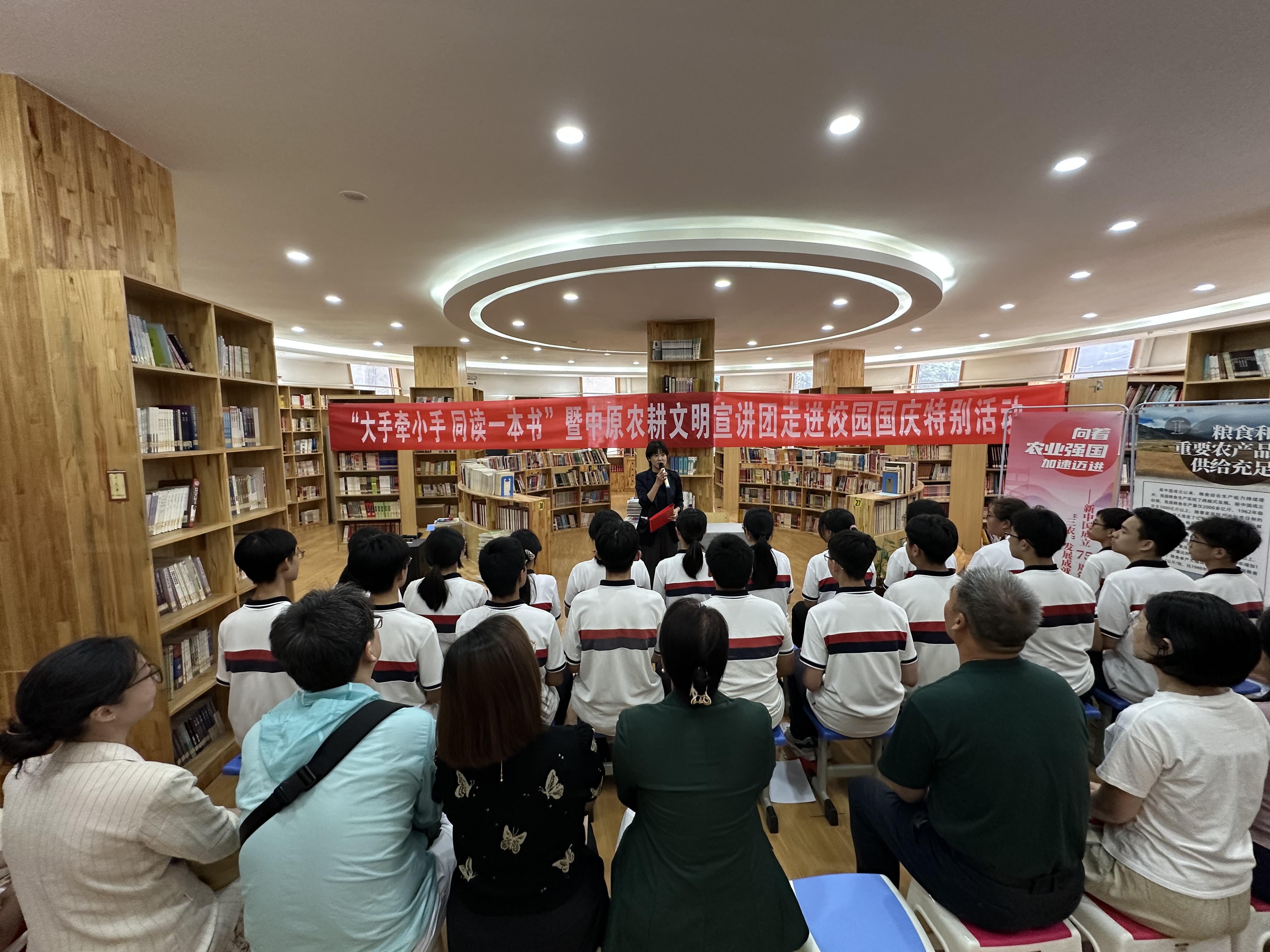 与农大附中联合开展“大手牵小手 同读一本书”暨中原农耕文明宣讲团走进校园国庆特别活动。农大附中党总支书记徐佳,纵横中文网