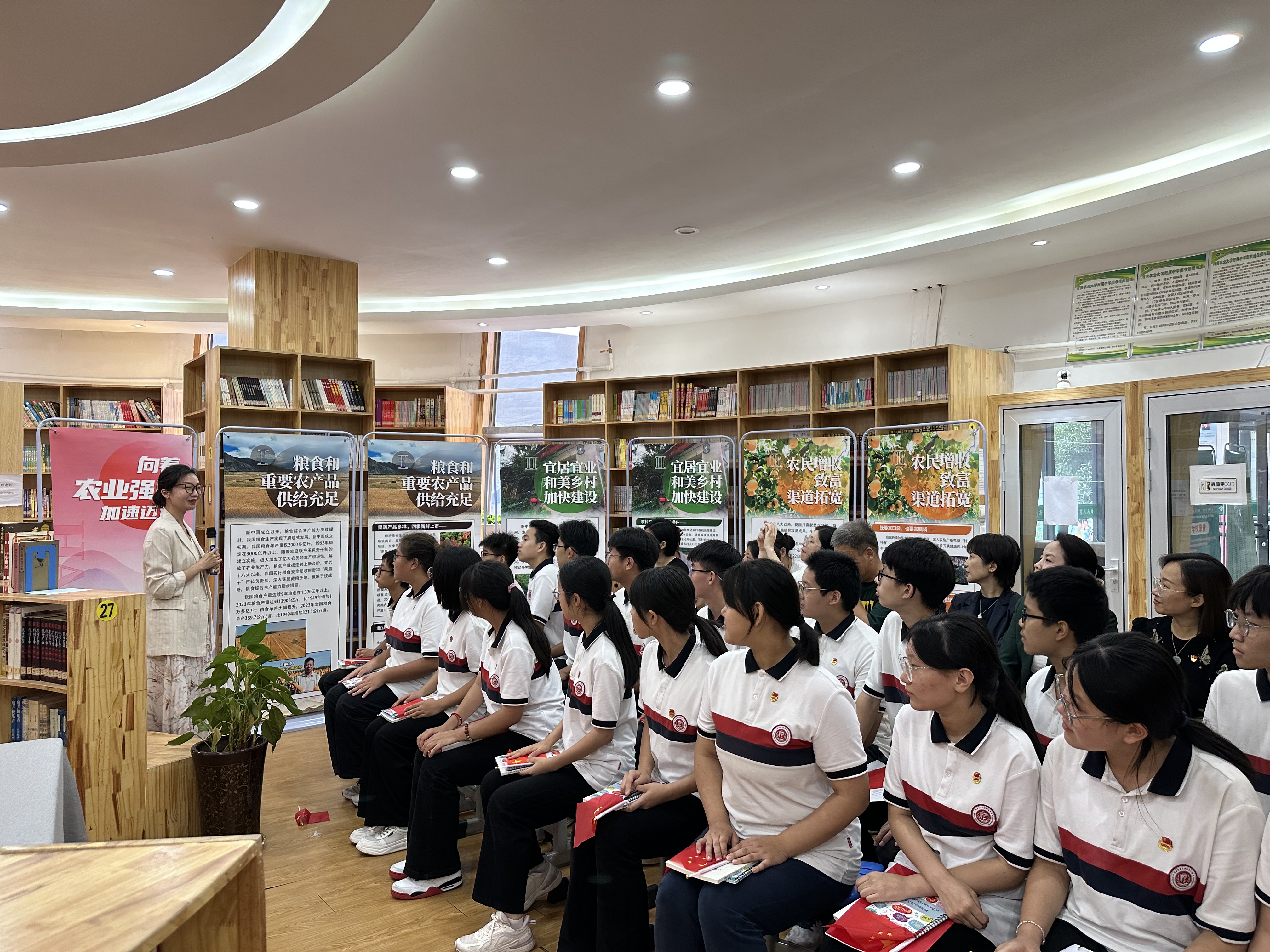 中原农耕文明宣讲团宋晓川副教授、杨澜副教授进行了宣讲,他们用中、英、日三种语言,生动形象的讲述了中原农耕文明的文化地位及其历史意义,带领师生共同参观学习了新中国成立75周年以来“三农”成就展,带领大家沉浸式体悟农业强国的辉煌成就。两位老师的讲解精彩,现场互动热烈,笑声与掌声交织,大家在轻松愉快的气氛中学到了知识,增长了见识。