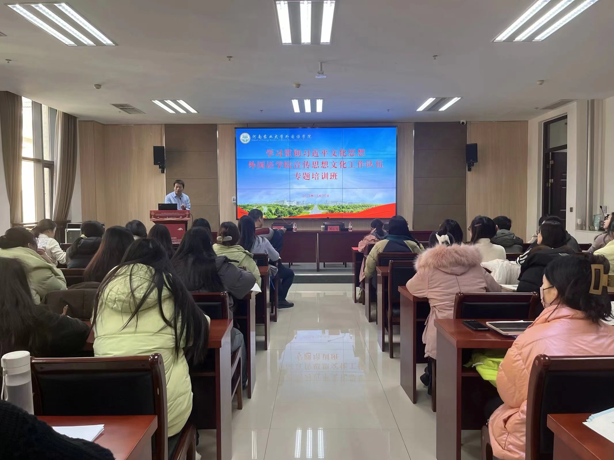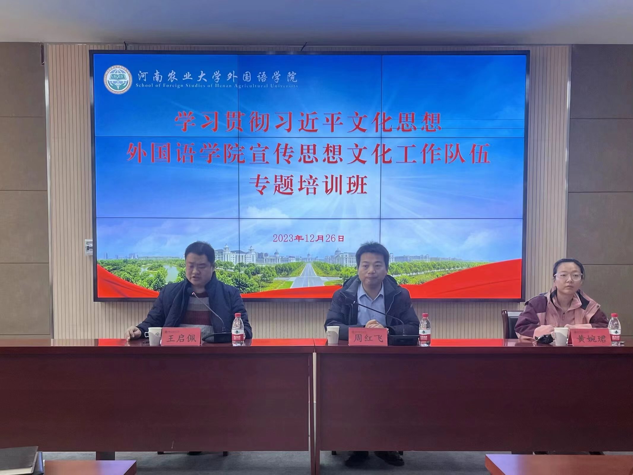 本次培训班是学习贯彻习近平文化思想的重要举措,下一步,学院将进一步坚定文化自信,贯彻落实好全国、全省宣传思想文化工作会议精神,全员动手做好意识形态工作,进一步加强中国国际传播能力,积极创新对外话语体系,坚持主动发声,讲好中国故事,讲好河南故事,讲好农大故事。