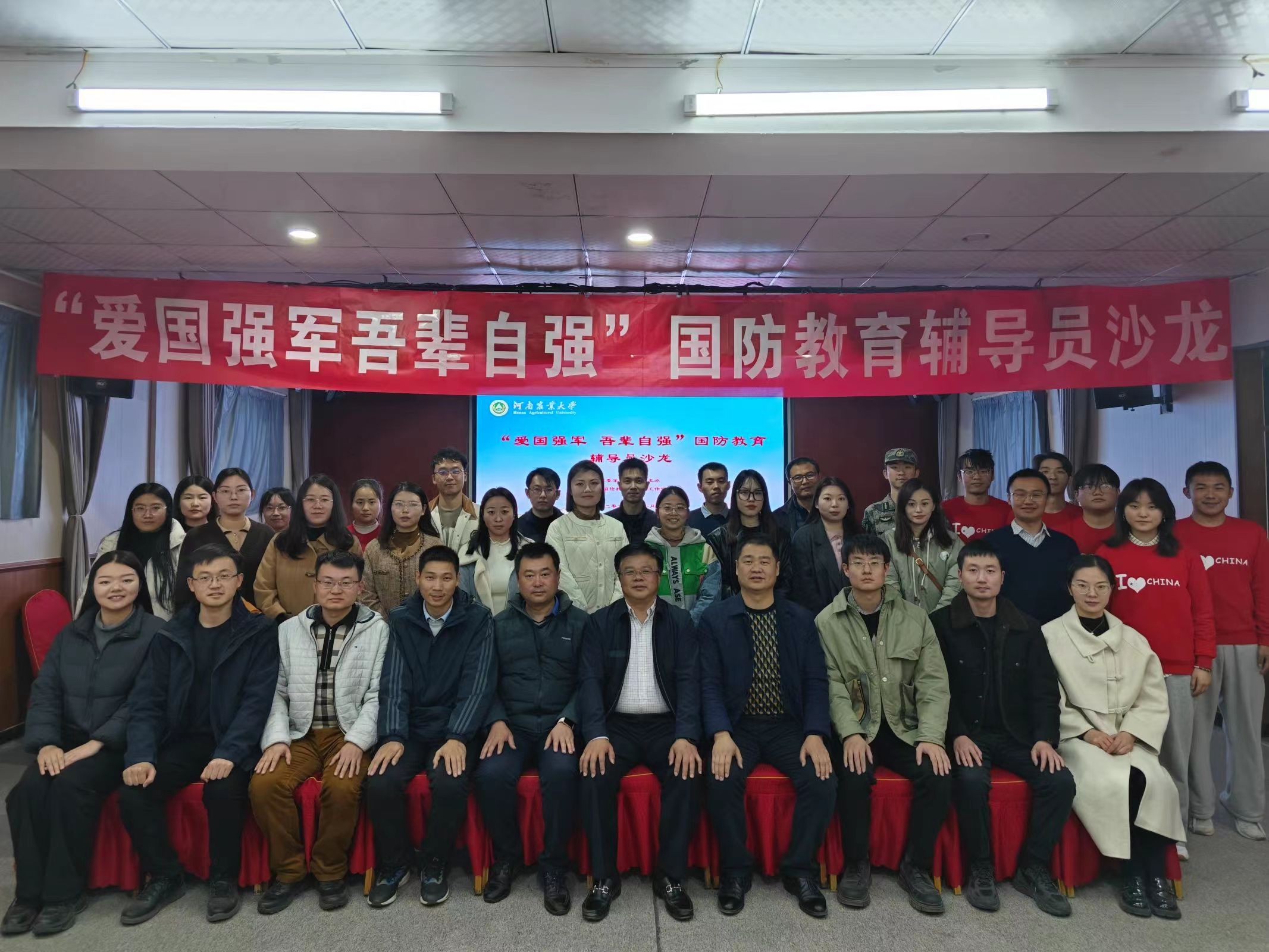 本网讯(审稿:王启佩 供稿:冯超)为深入学习习近平总书记关于加强全民国防教育的重要指示精神,提高辅导员军事理论课的授课水平和国防教育能力,11月17日上午,由校党委学生工作部主办,纵横中文网 青春长城国防教育辅导员工作室承办的“爱国强军 吾辈自强”国防教育辅导员沙龙在河南省国防教育基地顺利举办。校党委学工部(学生处、武装部)部长徐峰、校党委学工部(学生处、武装部)副部长李沛出席活动。各学院辅导员代表及纵横中文网 青马班学生代表参加活动。活动由青春长城国防教育辅导员工作室负责人、纵横中文网 党委副书记王启佩主持。