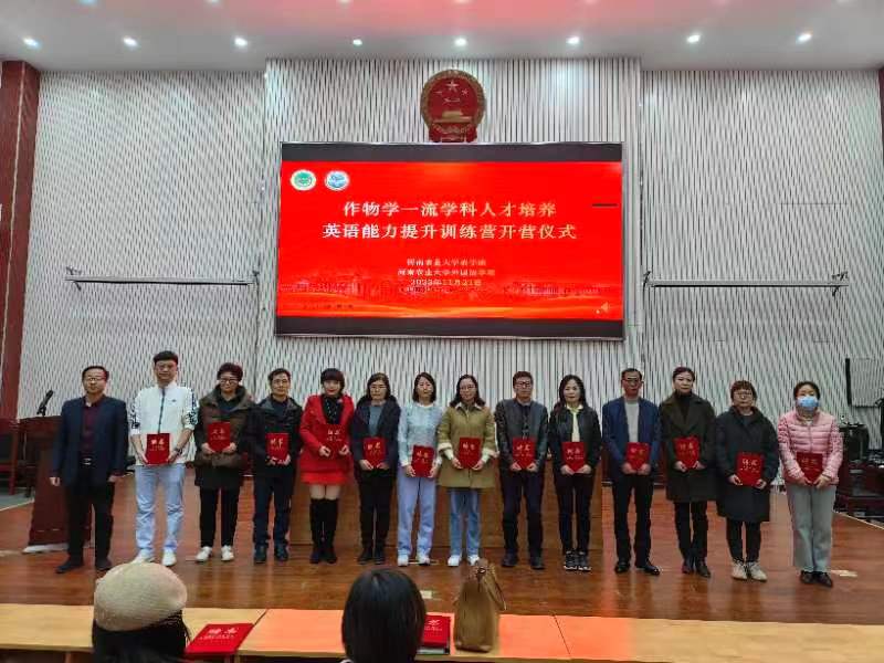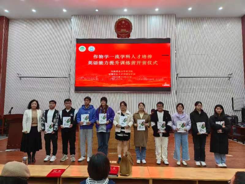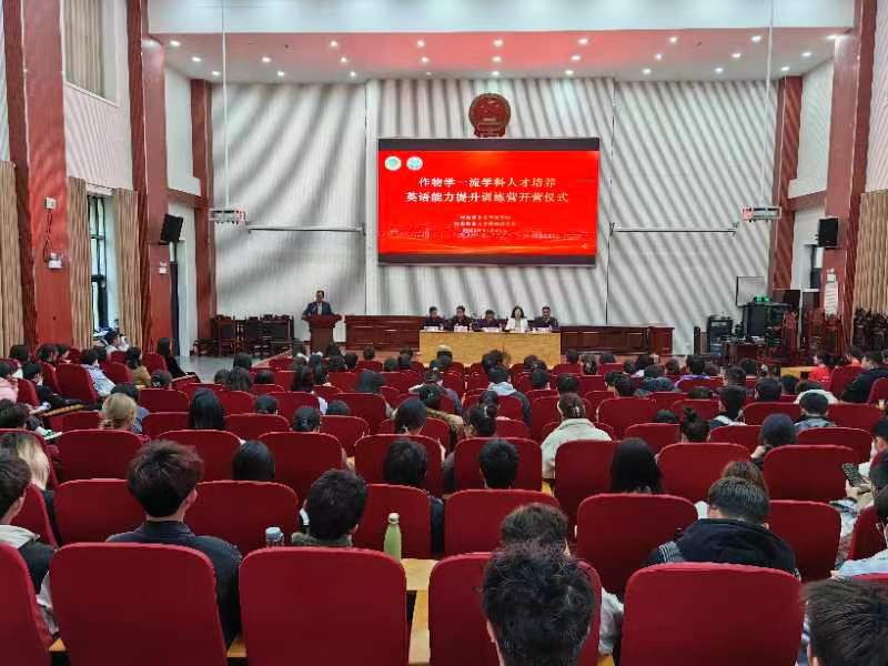 作物学一流学科人才培养英语能力提升训练营开营。他从四个方面阐述了举办训练营的重要意义,指出本次活动的举行有利于高标准完成我校作物学科“双一流”建设规划,提高人才培养质量,为社会培养更多具有国际化视野和三农情怀的优秀人才。他勉励学生们在浩瀚书海中博文明理、在笃行磨砺中温故知新、在学思践悟中坚定理想,争做优秀的农业科技人才。
