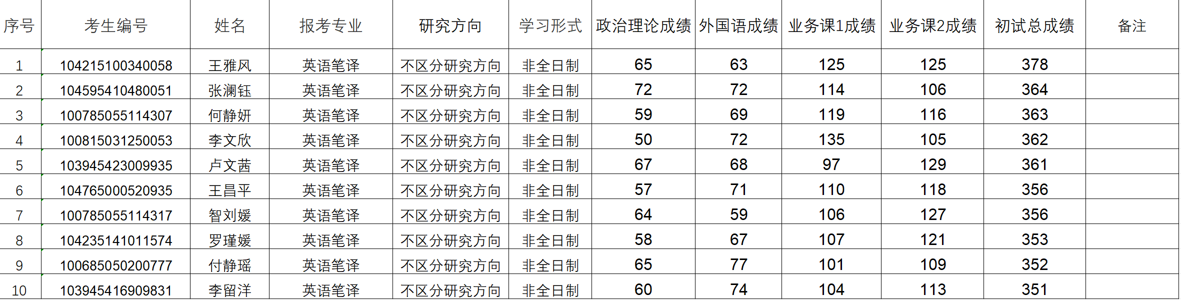 纵横中文网 英语笔译专业2025年硕士研究生复试名单公示(调剂)