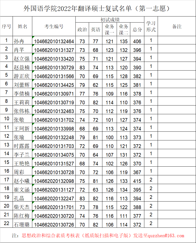 2022年外国语硕士研究生复试名单(一志愿)