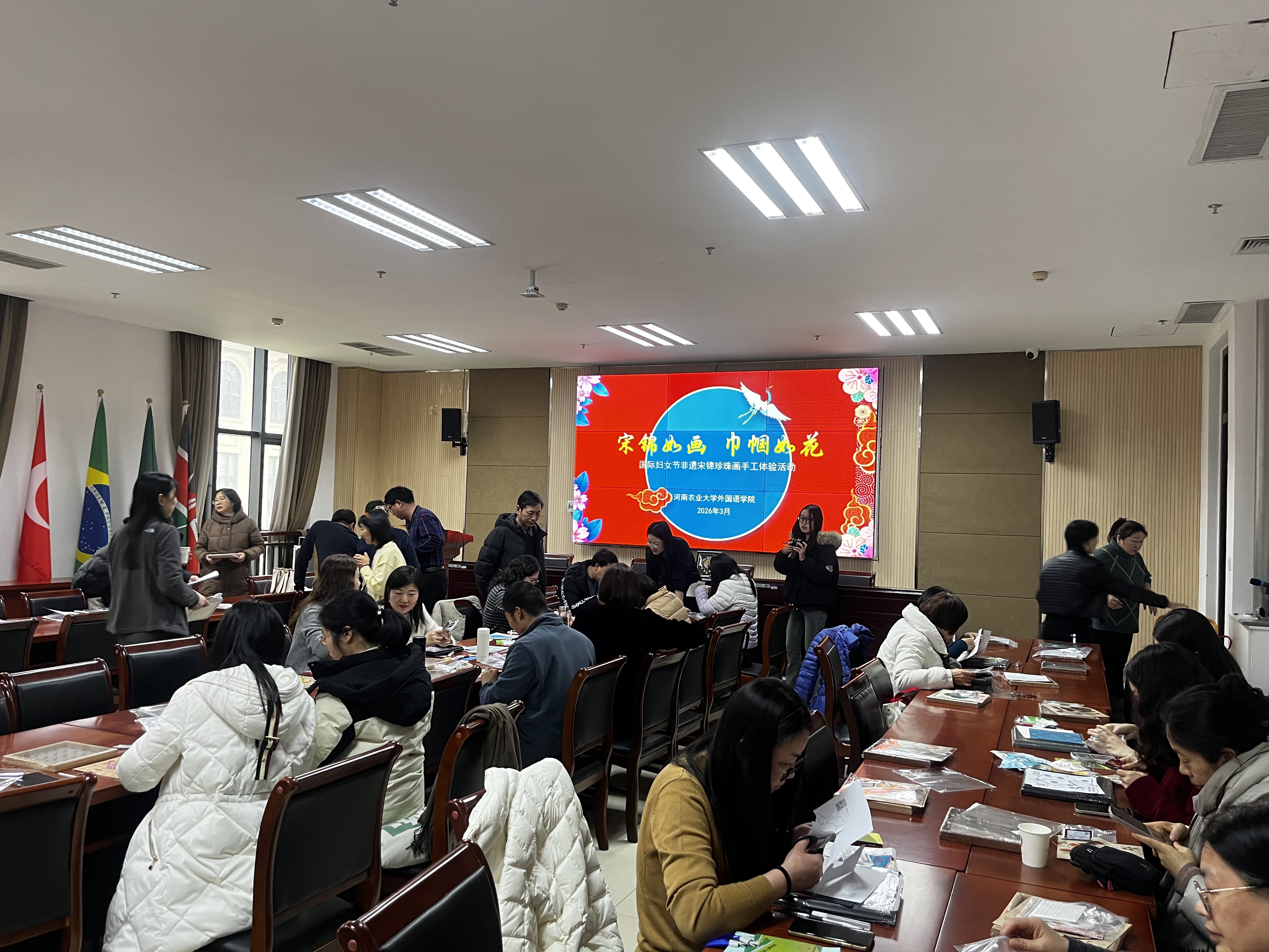 于2026年3月6日下午4点,在繁塔楼A324室举办“宋锦如画 巾帼如花”宋锦珍珠画手工体验活动。学院女教职工欢聚一堂,在指尖非遗中感受传统美学,共度温馨雅致的节日时光。