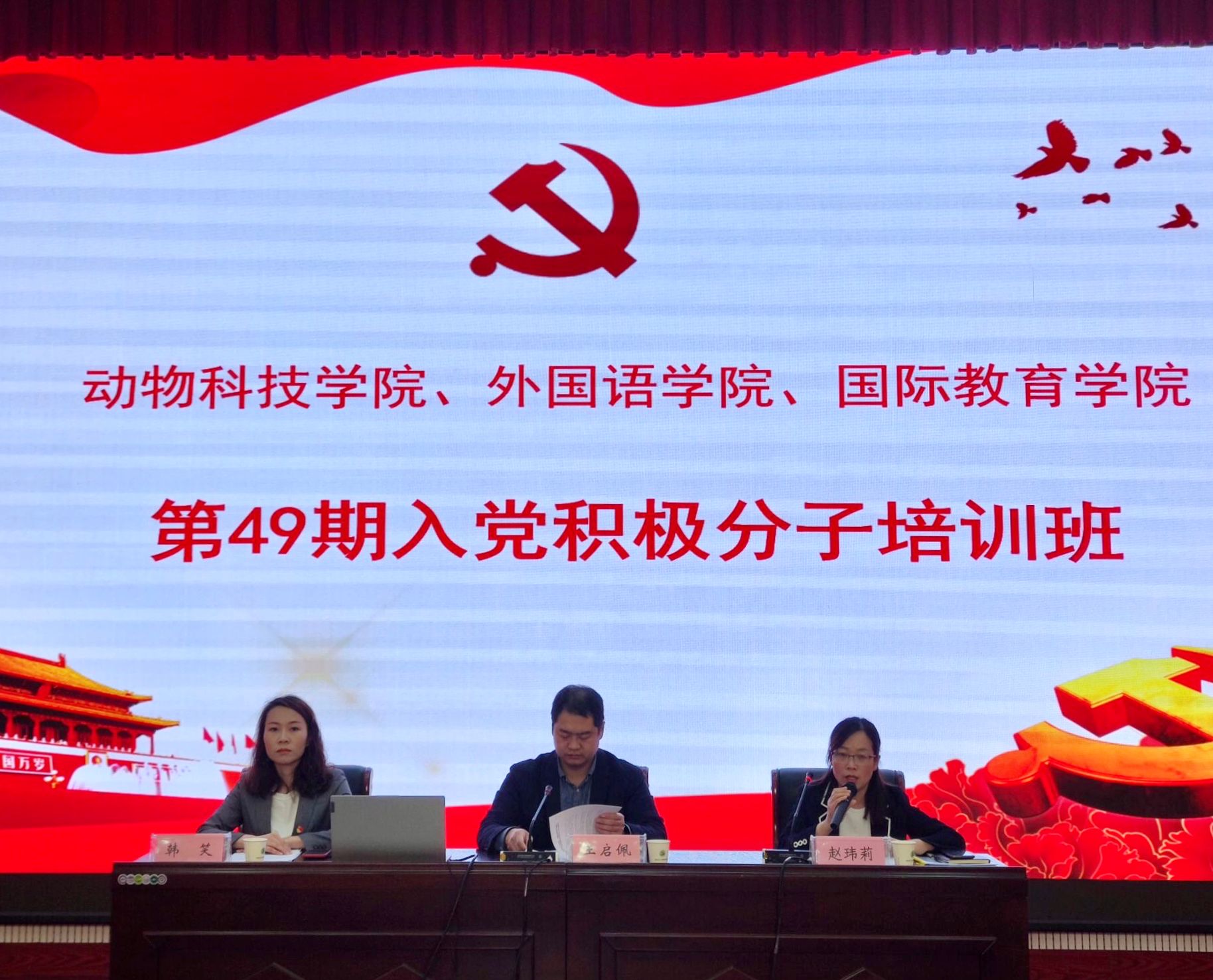 、动物科技学院及国际教育学院三院联合举办的第49期入党积极分子培训班。本次培训班开班仪式于4月11日上午八点半在龙子湖校区繁塔楼AB间大教室一举行,纵横中文网