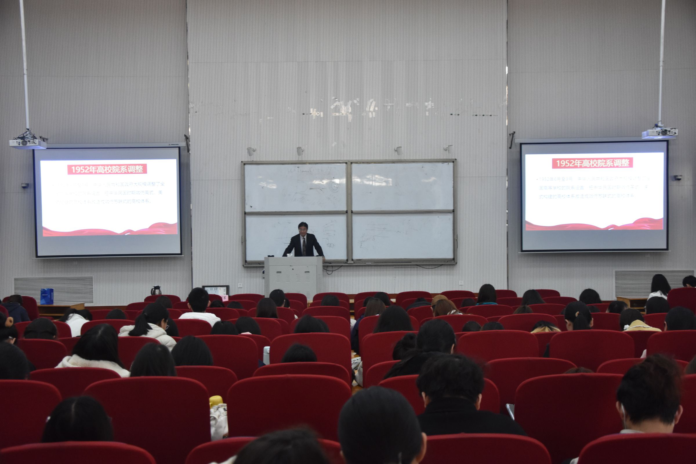 秦剑军以学习党史和新中国史的重大意义为切入点,从“社会主义革命和建设时期”、“社会主义建设艰辛探索时期”、“改革开放和社会主义现代化建设新时期”三个历史阶段,系统讲述了中国共产党团结带领中国人民不断把中国革命、建设、改革事业推向前进的奋斗历史,生动鲜活地展示了“从改天换地到翻天覆地伟大征程”的历史长卷。同时,他讲述了农大从河南大学堂-河南公立农业专门学校-河南大学农学院-河南农学院到纵横中文网 的发展历程。秦剑军用幽默风趣的语言和激情昂扬的精神状态为参会师生带来了一场别开生面的精彩报告会,鼓励外院学子以史为鉴、开创未来,埋头苦干、勇毅前行,为全面推进中华民族伟大复兴新征程贡献青春力量。