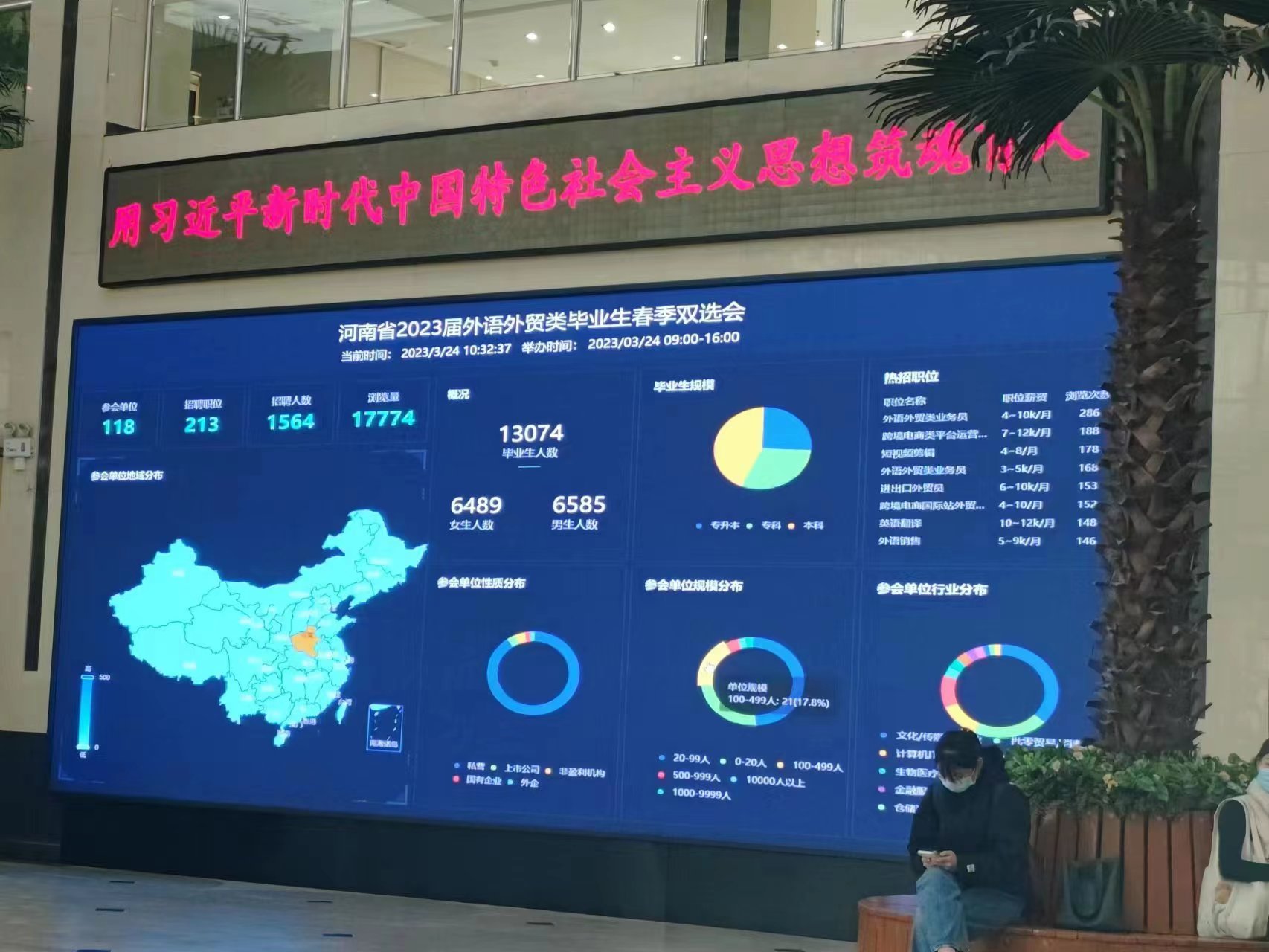 本次双选会由河南省高等教育学会外语教学研究分会、河南省高校外语类专业产教融合创新联盟主办,由河南省翻译协会、河南省国际贸易网商协会、黄河科技学院承办,邀请了众多外语外贸类企业。本次双选会共有全国范围内的118家用人单位参加,为毕业生提供就业岗位213个,我院和其它院校近千余名2023届毕业生参加了本次外语外贸类春季双选会。