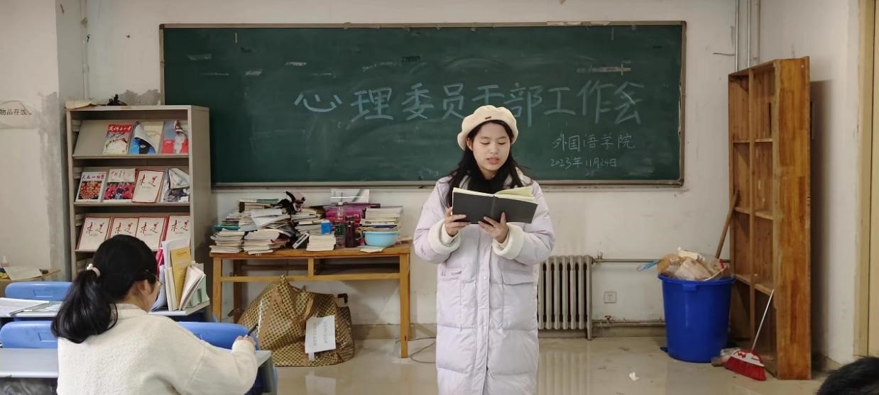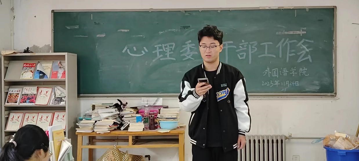 本网讯(审稿:王启佩 供稿:武宗励)11月24日中午,纵横中文网 在辅导员武宗励老师的带领下,于龙子湖校区成功举行了本学期第五次心理委员干部工作会议。此次会议旨在准确掌握学生近期心理健康状态,加强学生心理健康教育,加强学院心理健康工作建设。