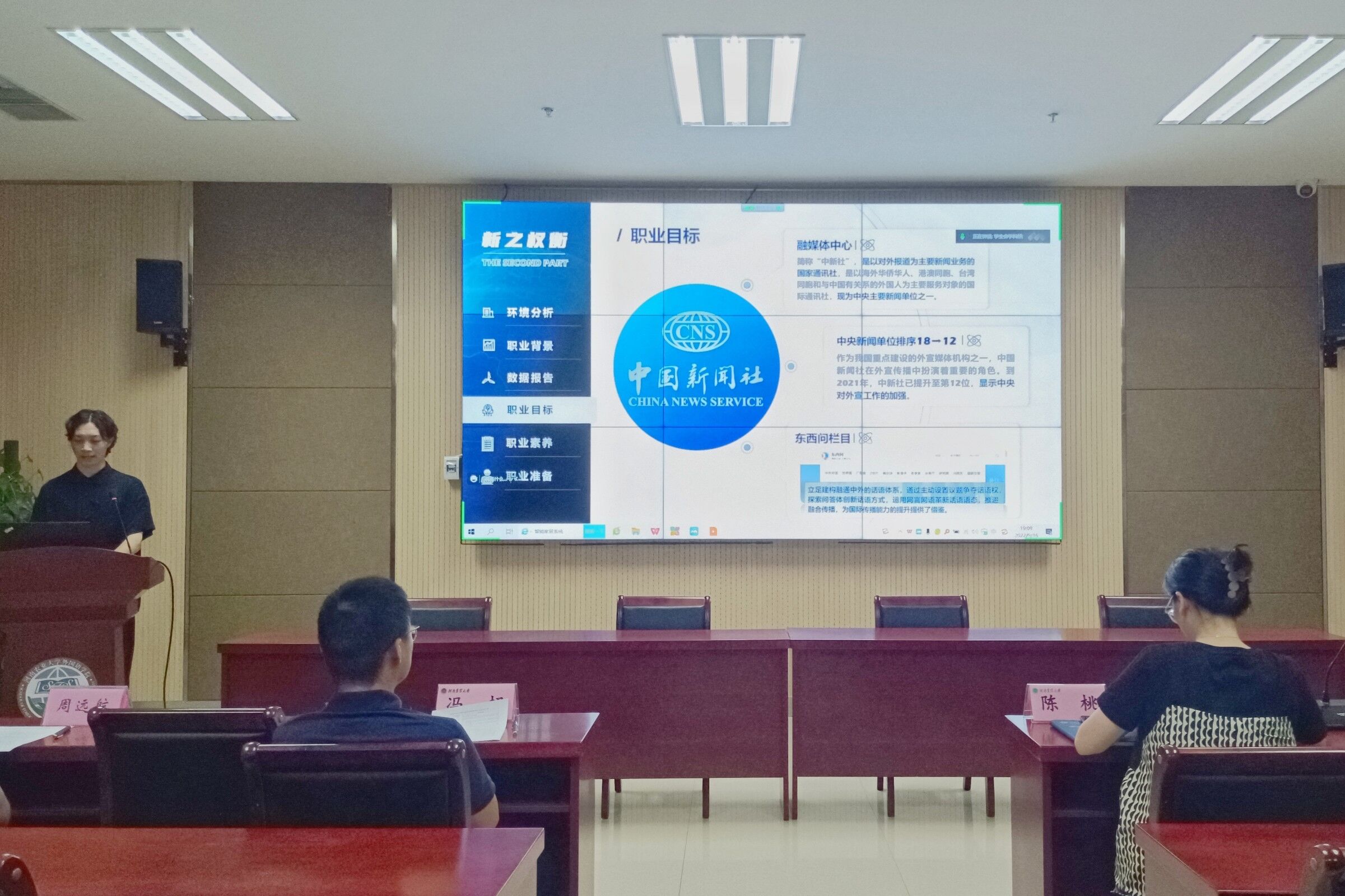 职业生涯规划大赛如期召开。此次大赛通过线下线上相结合的方式进行,团委副书记陈桃、冯超出席比赛并担任评委。