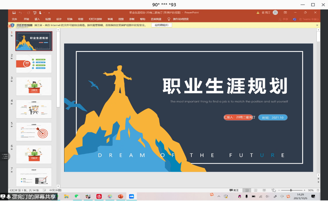 于10月6日下午14点在线上举行了2021年职业生涯规划大赛。团委副书记陈桃、冯超及辅导员穆君怡出席比赛并担任评委。