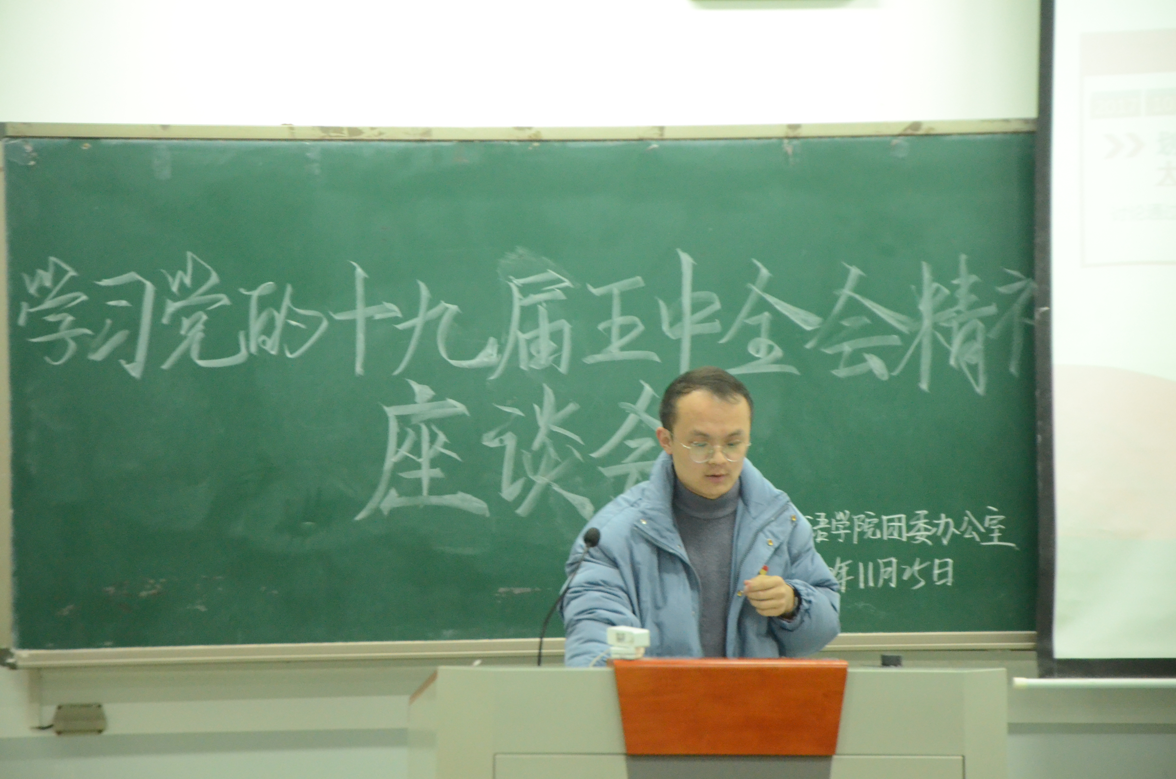 本网讯(审稿:李沛 供稿:张引倩)为带领广大青年深入学习党的十九届五中全会精神,增强我院学子的政治认同、思想认同、情感认同,11月25日晚7点,我院于龙子湖校区繁塔楼C306举办了学习党的十九届五中全会精神讲座。优秀学生党员武文浩担任主讲人,各团支部支部书记、副书记及委员参加讲座。