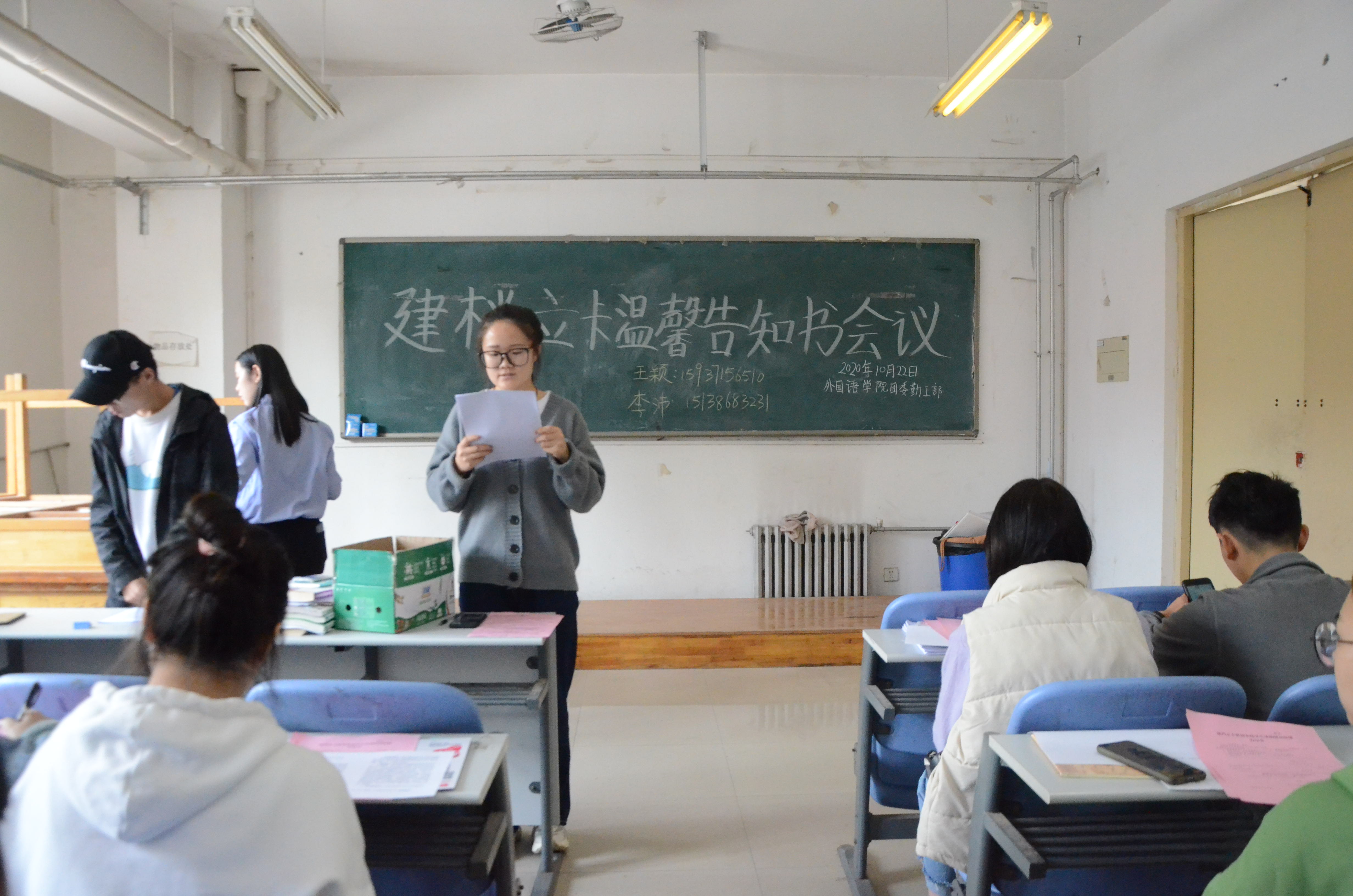 本网讯(审稿: 李沛 供稿:王莉)为让学生了解建档立卡政策的相关知识,进一步完善学院建档立卡贫困家庭学生资助工作办法,10月22日中午12点半,我院在龙子湖校区海棠园204室召开了建档立卡温馨告知会议。本次会议由团委委员、勤工部负责人主持,我院全体建档立卡学生出席此次会议。