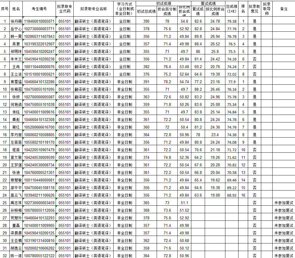 纵横中文网 2020年翻译硕士复试名单(调剂)