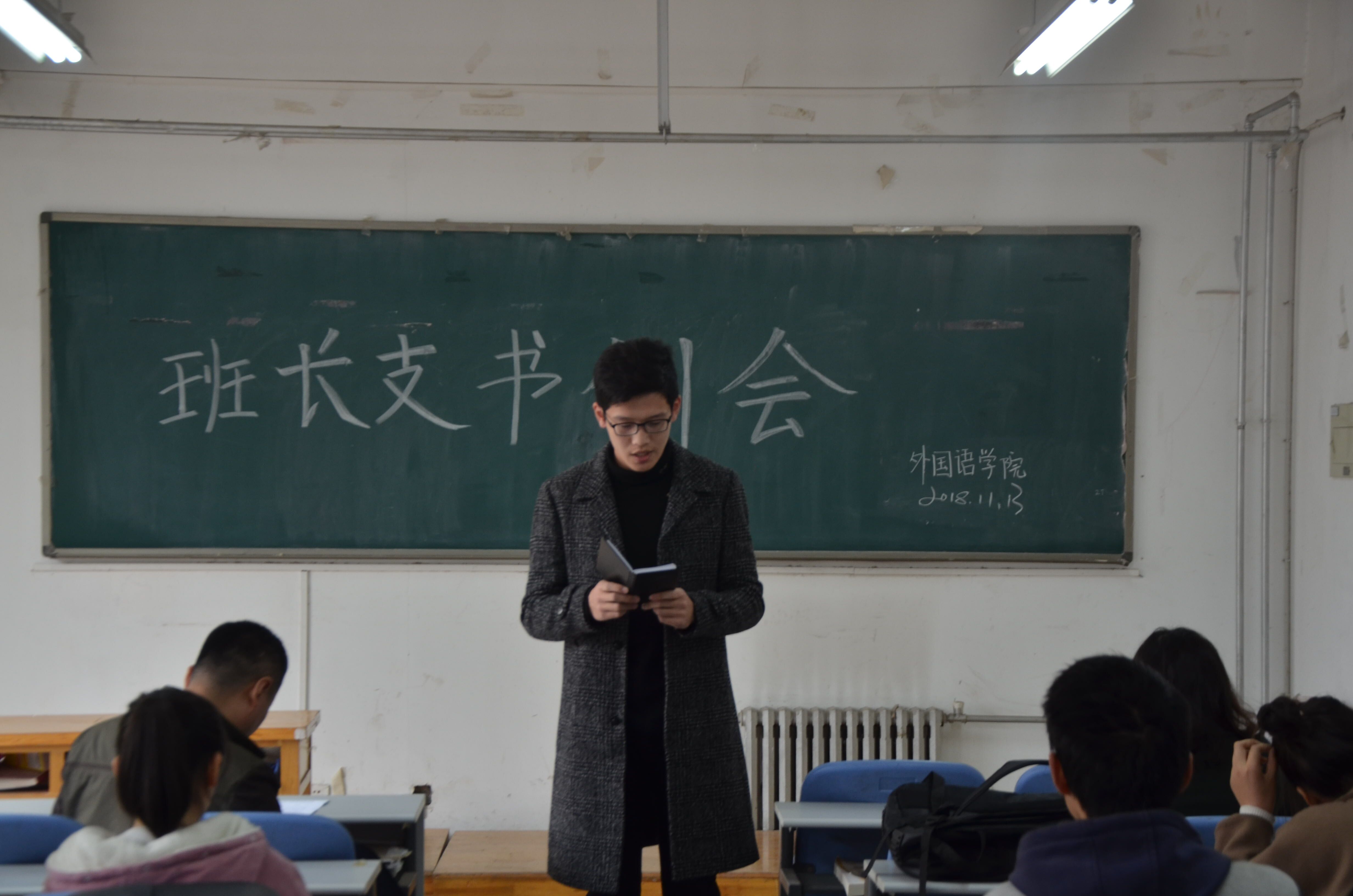 学生个人德育量化管理细则(第九修正案),学生会办公室再次向各班班长支书征求意见和建议并进行及时修改。随后,团委办公室主任楚聪对上周道德讲堂活动出勤率较高的班级提出表扬,并详细安排了本周团日活动及青年大学习等相关工作,进一步深入学习贯彻党的理论思想。最后,李沛强调了寝室防火防电等安全注意事项,表现出了对我院学生的深切关怀。接着,他公布了学院近些年来的专四、专八过关率、日语N1过关率、考研率等数据,重点强调了早晚自习的重要性:早自习大声朗读可以提高口语能力,晚自习多看外语原版小说可以增强语感,同时鼓励我院学子坚持早晚自习,努力学习专业知识,积极掌握专业技能,书写精彩的大学生活。