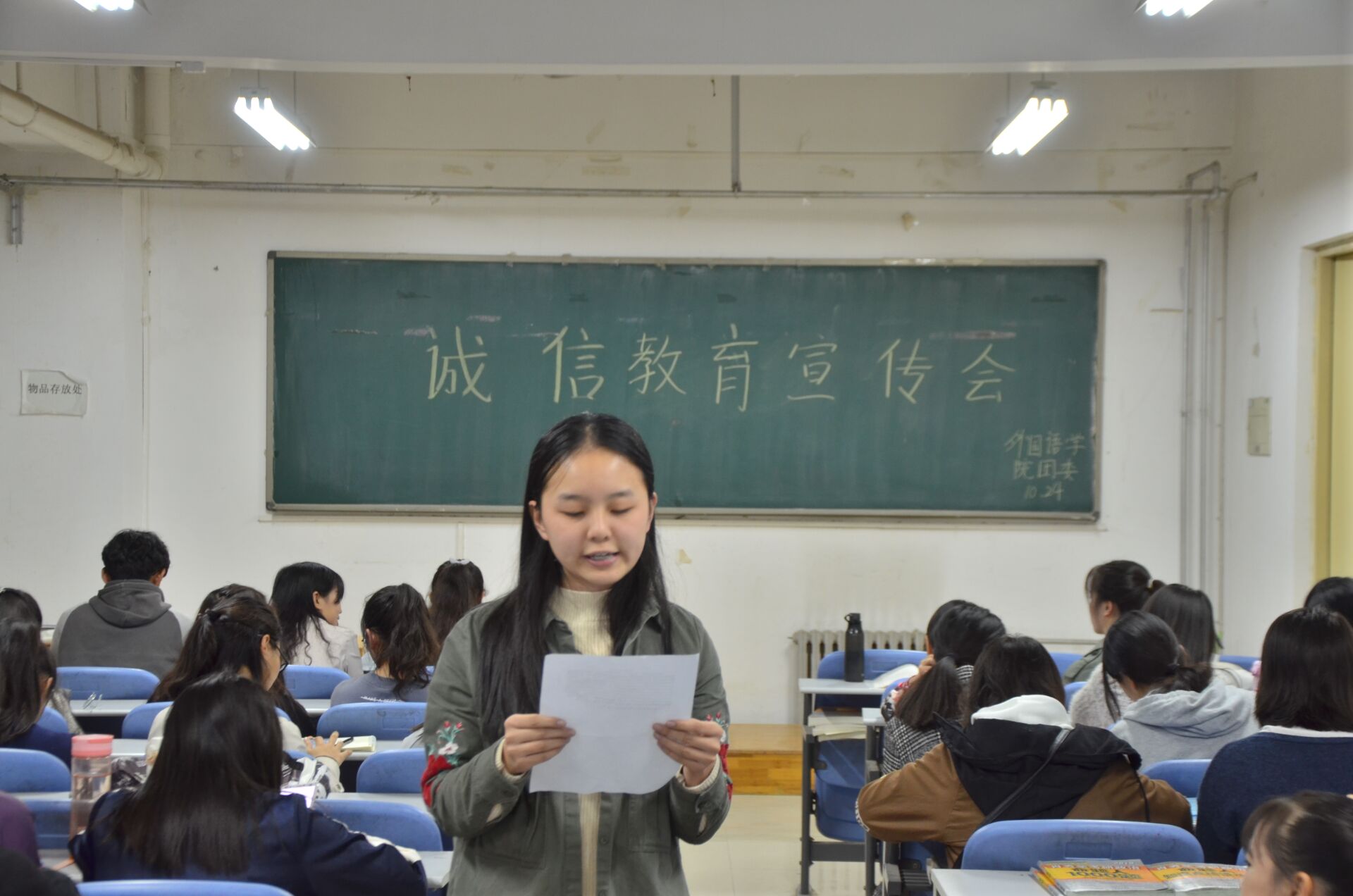 本网讯(审稿:王颖 供稿:饶芝玉)为增强学院学生诚信意识,推动学院助学贷款工作顺利发展,10月24日晚七点,学院于龙子湖校区海棠楼202室举办了“诚信校园行”主题宣讲会。学院各班级代表出席了本次宣讲会。